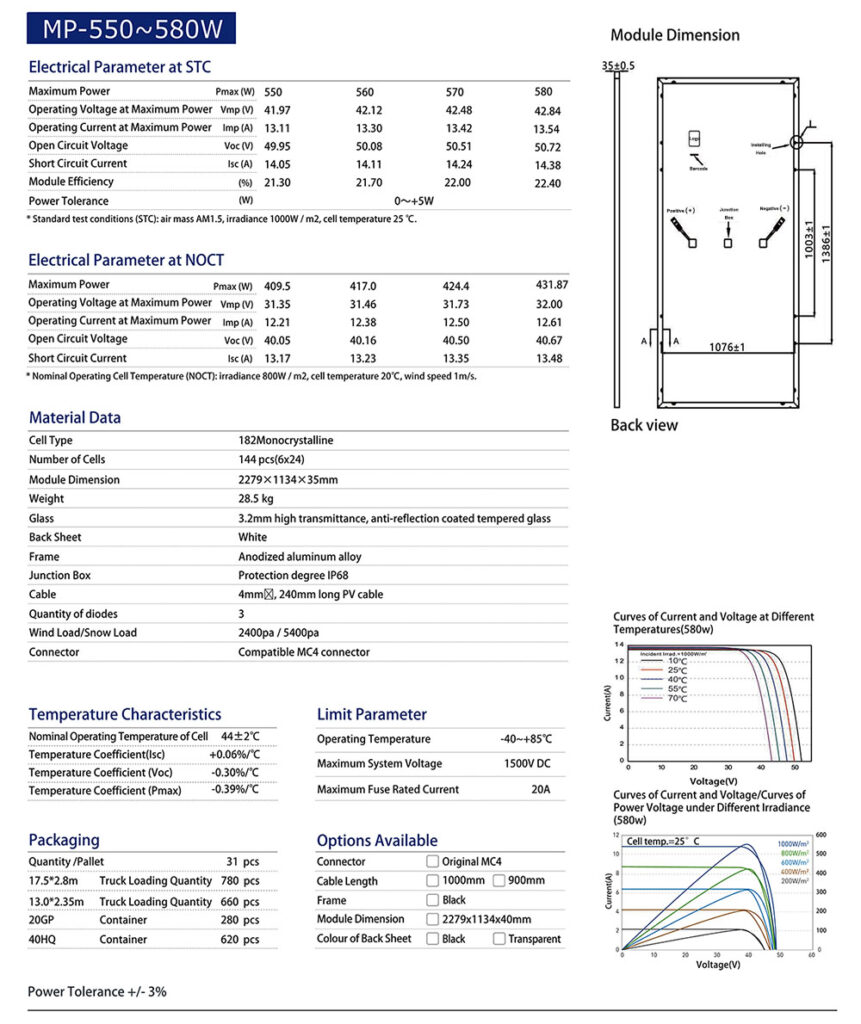 Plus Power 550W Mono solar panel Specification: